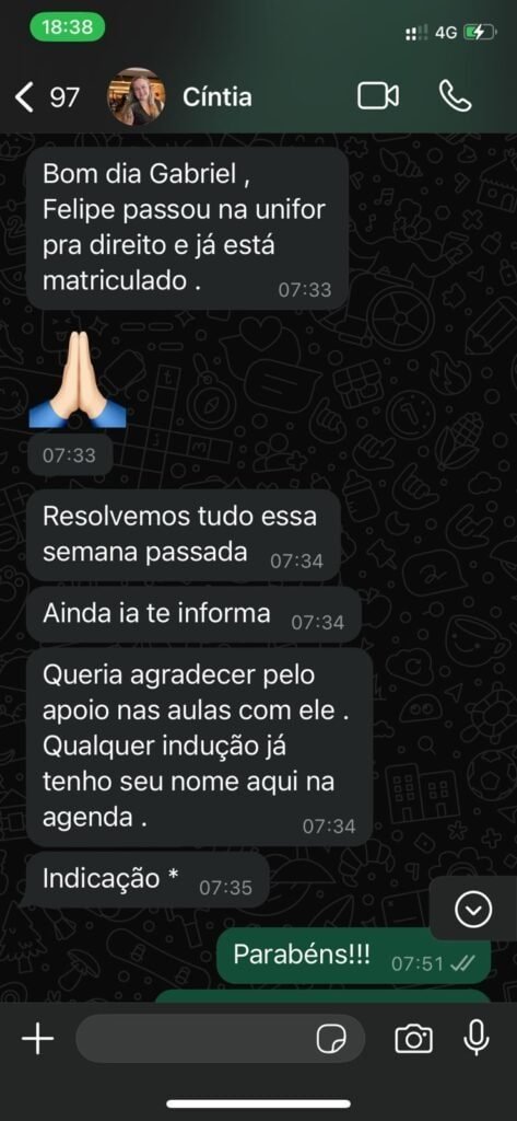 Daniel Filho começou o acompanhamento com a nossa equipe e já apresentou avanços notáveis